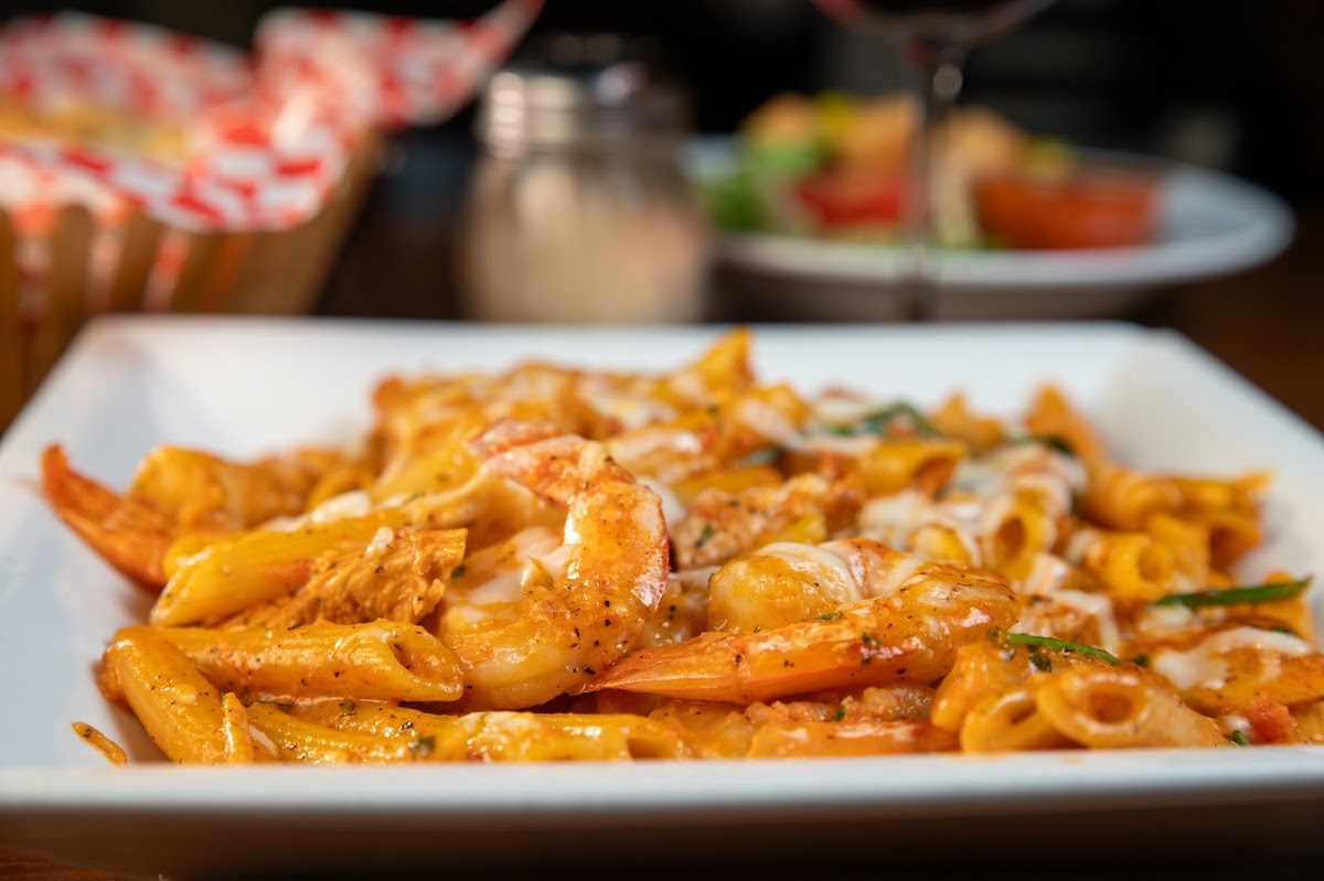 Atmosphere is quaint and serene. Food is to die for! Owners are immensely sweet. I got the Baked Tuscany, fried mozzarella sticks and Cesar salad. Chef's kiss on all of it The shrimp inside the Tuscany are huge! Love love love it. I will be back. It's dangerous that I live next door.