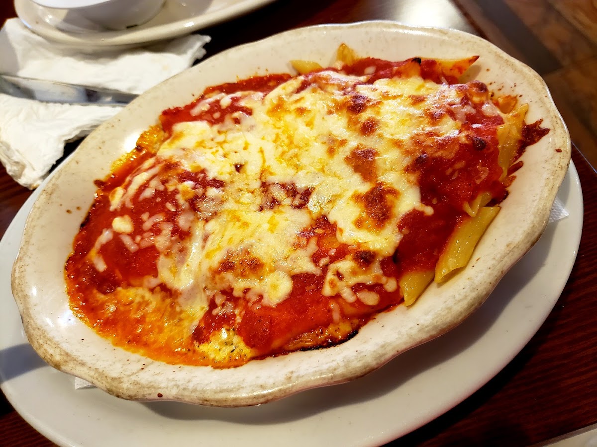 The garlic bread w cheese is awesome. Chicken Parmigiana was goooood, chicken was moist and well seasoned. Baked Tuscany is fulfilling and savory big bites of shrimp, my favorite. The proportions are on point. Our server Helen was kind and pleasant.