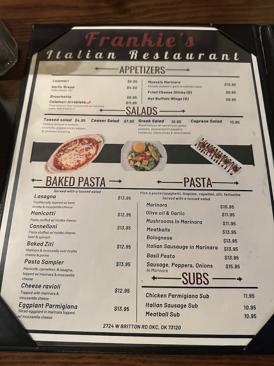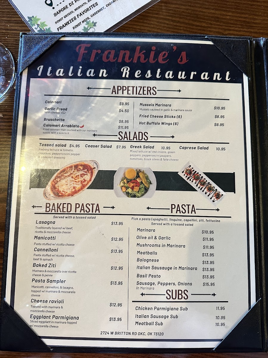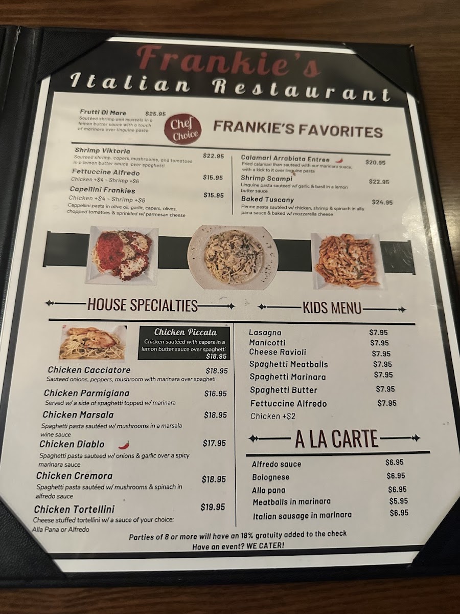 Frankie’s Italian Restaurant offers a menu that reflects the warmth and comfort of a traditional Italian kitchen, perfect for casual dinners and relaxed gatherings. The selections invite you to enjoy familiar flavors presented with care, from hearty pastas and crisp salads to satisfying subs and classic pizzas.