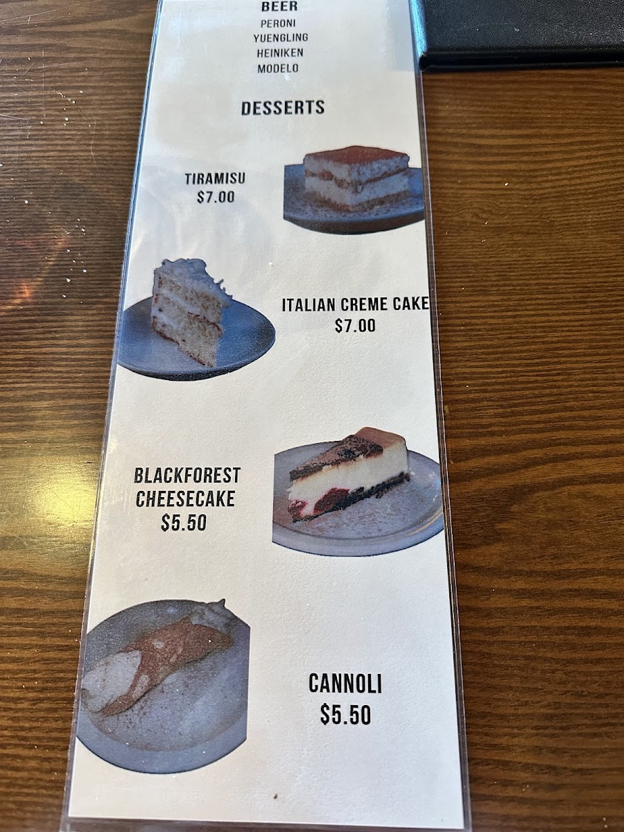 Many guests come for the inviting pasta dishes like Chicken Parmigiana with side spaghetti marinara or the flavorful Chicken Piccata in lemon butter sauce, ideal for a cozy night in or a leisurely meal with friends and family. Lighter options, such as the Caprese and Caesar salads, provide a fresh balance, while the garlic cheese bread and fried calamari make for enjoyable starters alongside a glass of wine or a refreshing soft drink.